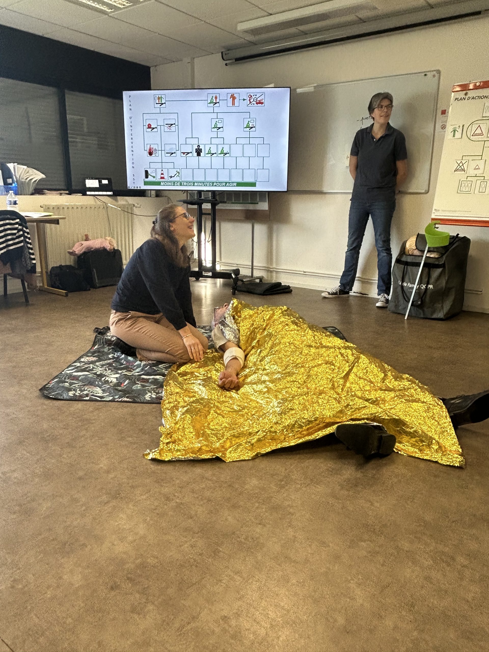 Depuis, régulièrement, nous mettons en place des sessions de recyclage. Marjorie et Eric ont pu suivre la journée de remise à niveau grâce à la CPME et au sein des locaux de la Croix Rouge.